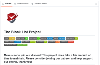 Blocklist Project ponuja različne sezname za enostavno prilagajanje potrebam blokiranja uporabnikov. Ti seznami se lahko uporabljajo v kateri koli kombinaciji in so popolnoma podprti v Pi-Hole in AdGuard Home.
