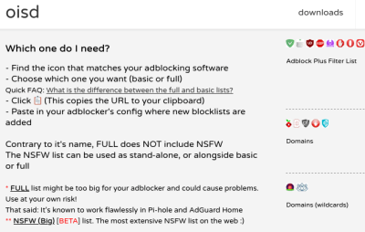 Osnovni seznam predvsem blokira oglase, medtem ko popolni seznam vsebuje vse od oglasov, zlonamerne programske opreme, prevar/phishing, telemetrije, sledenja itd. Poleg tega popolni seznam vključuje vse iz osnovnega in NSFW seznama.