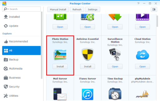 - Poiščite in namestite paket Synology Photos.